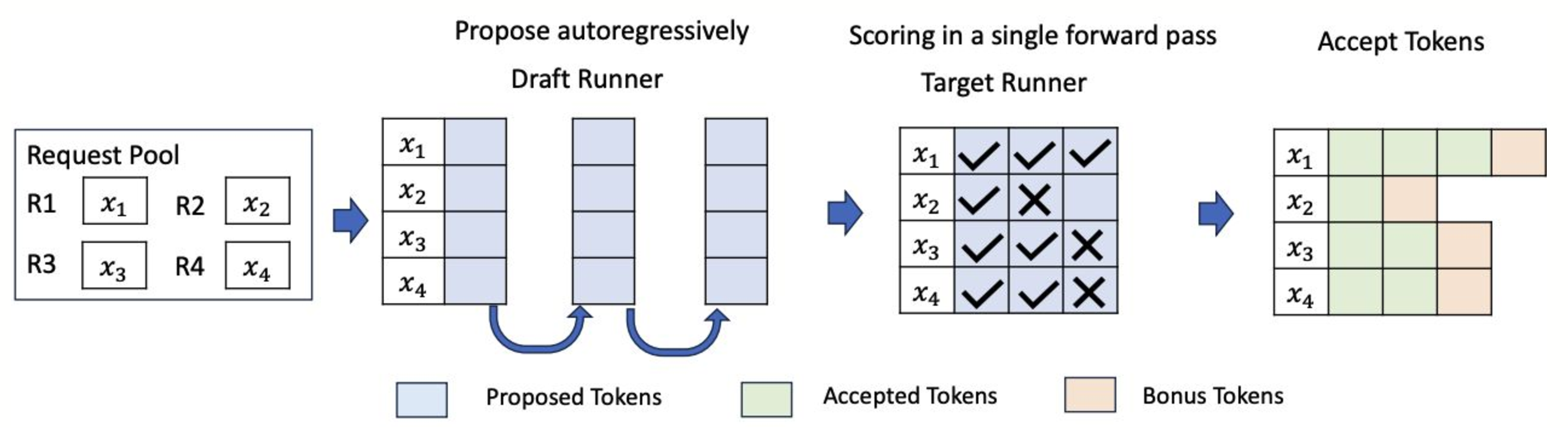 - Draft Runner: This runner is responsible for executing the smaller model to propose candidate tokens.