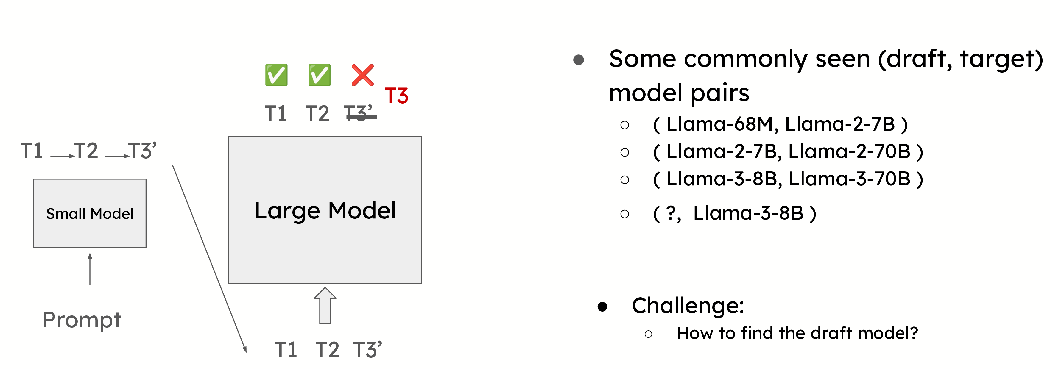 - Target Model Verification: The larger model verifies these tokens in a single forward pass. It confirms correct tokens and corrects any incorrect ones.